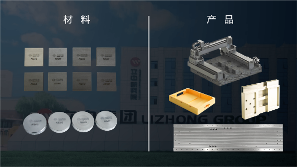 应用领域:航空航天器用结构件、电子封装;半导体设备用基座、支撑架、静电卡盘、基板、平台、横梁等,尤其是高速运动部件。